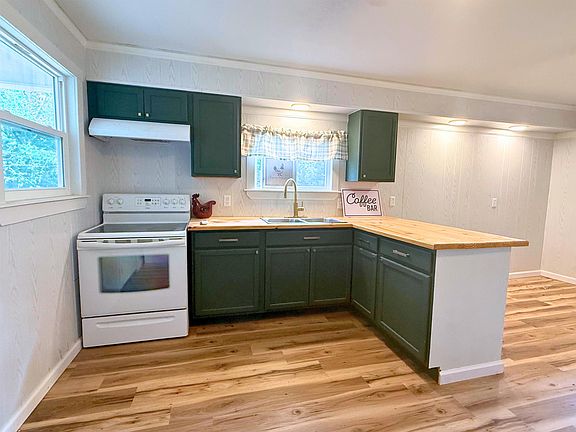 New flooringNatural lightButcher block countersUpdated cabinetry