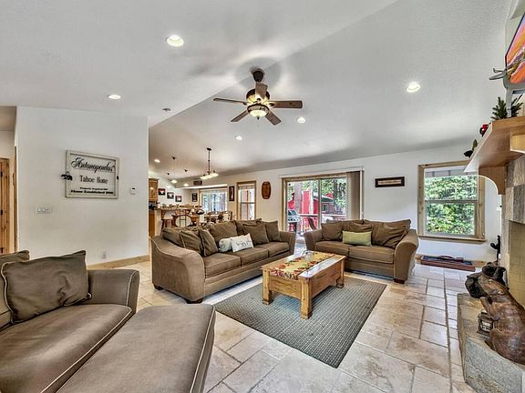 Available for monthly rental - listed price is the peak season rate. Monthly Rates vary. Please inquire for full pricing details for your stay dates. * Price Includes cleaning every 31 days, utilities, snow clearing, and hot tub maintenance (if hot tub at the property) * Age requirement - 25 years or older. Do not inquire if you are under 25 years old * Price Includes cleaning every 31 days, utilities, snow clearing, and hot tub maintenance (if hot tub at property) * Age requirement - 25 years or older. Do not inquire if you are under 25 years old More than just a home! Everything you need is provided. Fully furnished, one set of bed linens and towels, all utilities included, yard care included, snow removal included. This home is setup like a vacation rental with all cookware, glassware, flatware, starting supply of paper towels and toilet paper. Available for 30-90 day rentals! Live like a local in South Lake Tahoe from Cedar Pine Cabin. This updated Tahoe home is nestled in a quiet neighborhood surrounded by tall pines. Newly remodeled kitchen and baths, including heated floors throughout. You will feel right at home as you enter the main living space with a plush living area, fireplace, smart TV, and a sofa sleeper. Adjacent is the casual dining area, breakfast bar, and fully-equipped kitchen. Just off of the great room is the private balcony with a natural gas grill. And when you're ready for a little competition, take a seat at the two player multi-video game table for some friendly fun. This 2-story home has comfortable sleeping & dining for a family of 8. It cannot host more than 7 people over the age of 5. This applies 24/7. CDC-compliant cleaning & no-contact check-in. Home Summary: 3 Beds, 2.5 Baths, Split-level home BD 1: Primary, King, upstairs, 56" Smart TV, ensuite bath BA 1: Ensuite, dual vanities, Walk-in shower, tub BA 2: Half bath, upstairs hallway BD 2: Queen bed, downstairs, 44" Smart TV BD 3: Twin over Queen Bunk, downstairs, 44" Smart TV Living Room: Fireplace, 56" Smart TV, sofa bed BA 3: Downstairs, Walk-in shower, Tub Dog Friendly Fully fenced pet-safe yard Parking: 2 in the driveway, 2 in the garage Natural gas BBQ Bonus family room downstairs, 56" Smart TV Heated Floors on both levels of home Remodeled bathrooms and kitchen 2-car garage with access to downstairs living area and bedrooms 2-player sit-down multi-game table This large backyard is perfect for lounging, kicking around a ball and playing chase with your furry friend. The whole gang can have a delicious BBQ amongst the pines. From Cedar Pine Cabin it is just a short walk to the beach, a quick drive to Heavenly Ski Resort, and is close to an array of shops and restaurants. In the Summers, you are also close to Live at Lakeview, a local music and arts series that occurs every Thursday. The chef of the group will love this recently remodeled kitchen. Complete with french door fridge, microwave, gas oven and 4-burner stove, and not to mention brand new granite countertops with stool-seating for 6 at the breakfast bar! The whole family can gather around while the chef puts on a show! The kitchen opens up to the living area, with a large family dining table (seats 8) joining the two. And when you're done with a long day of Tahoe fun and ready to crash, you'll have 3 cozy bedrooms to choose from. The primary suite is located upstairs, featuring a king sized bed, 56" Smart TV, and ensuite bath. The primary bathroom features dual vanities, a walk-in shower, and a tub. Also on the upstairs floor of this home, you will find a half bath in the hallway. Downstairs, there are two more bedrooms. Bedroom 2 features a queen bed and 44" smart TV. Bedroom 3 features a twin over queen bunk and 44" smart TV. In addition, there is a second family room on the ground floor, so everyone can spread out and relax. Pets: 1-2 dogs allowed w/ pre-approval, additional fee required. No other animals allowed. Bring a crate if you plan to leave a dog unattended. Dogs are not allowed on furniture or in/on beds. Any barking or behavior that bothers neighbors is not allowed. You will be responsible for extra cleaning charges for hair on furniture, pet stains, dog droppings, & any damage caused by dog(s). For 30+ day stays, contact us for details on cancellation policy. We meet Rent Responsibly standards & uphold VHR ordinances to ensure you & neighbors enjoy the peace & beauty of our community. This home is equipped w/ privacy-compliant, noise-monitoring technology to protect you from noise complaints. This home may also have security cameras to ensure parking does not exceed legal requirements. We care about your safety & security. We do not permit any video security devices inside our homes. RnRVacationRentals Lic.#02198787 Maximum 120 day rental. Occupant must agree to rental terms and sign Lease agreement. Occupant must provide valid credit card, ID, and agree to credit check. Occupants must abide by rules for vacation rentals as outlined in Lease agreement. Smoking or vaping is not allowed inside or on the property. Owner pays utilities, water, and garbage service. Fees will include housekeeping every 30 days. Rent, cleaning and fees are not taxed. For cancellations more than 60 days prior to check in, rent and security deposit will be refunded in full. For cancellations within 60 days of check in, security deposit and cleaning fees will be refunded. Rent will be forfeited. If the occupant chooses to bring a pet, a daily pet fee is added to rent. A $1000 security deposit is required for every 30 day increment. Renter's insurance is recommended.