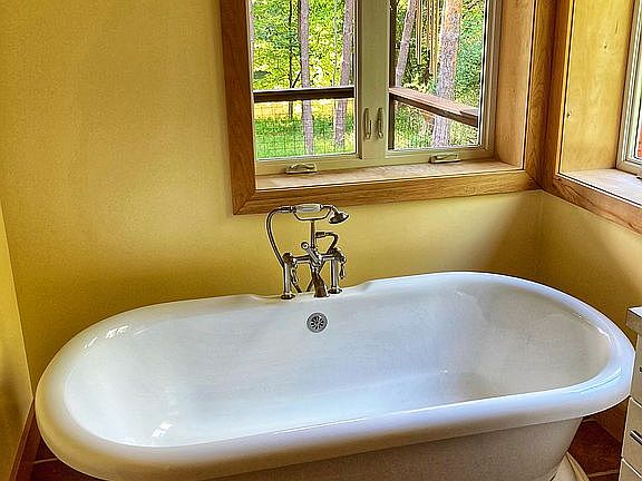 The basement is partially finished, a workout area on one side, and a place for kids to hangout on the other. The basement has full size windows facing the river, so it doesn’t feel like a basement.