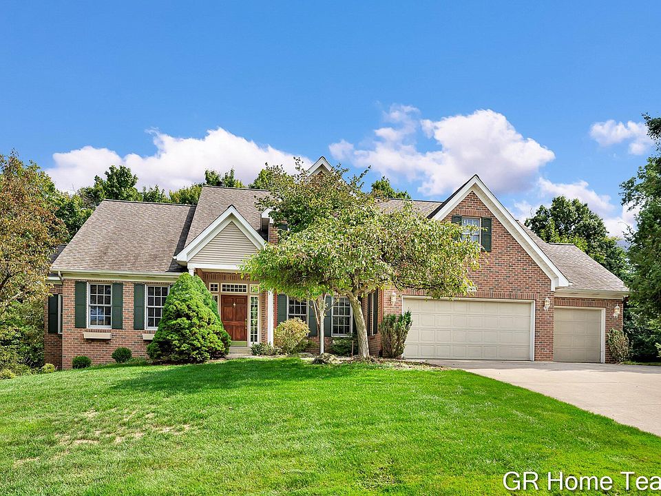 Luxury home on 1.2 acre lot with all the quality and custom detailing you would expect in a Jon Merchant built home. Meticulously maintained and offering every space you would desire. Main floor features soaring ceilings and stunning millwork plus a grand staircase. Throughout the home you will find solid wood doors, custom solid wood cabinetry, updated roof and mechanicals, tall ceilings and the highest level of construction quality. Main floor primary suite with tray ceilings, french doors and ensuite large bathroom with dual vanities and walk-in closet. This home offers 5 bedrooms plus main floor home office plus a second floor hobby room. The heart of the home lies in the kitchen with attached hearth room. Lower level with 9 ft ceilings is entertainers dream - offering huge spaces for big screen TV's, a full kitchenette/bar area, direct access stairwell to the 3 stall garage, 5th bedroom, full bathroom, and massive storage room. Easy bike ride on paved trail to downtown Ada!