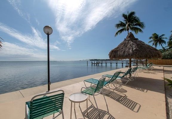 DETAILS: The Palms of Islamorada is a condo complex consisting of 84 units and is located directly on the Atlantic Ocean. The complex features separate his and hers mini-gyms, heated pool, hot tub, tiki for gatherings and lots of lounge chairs so soaking up the wonderful sunshine. This one bedroom unit has partial views of the ocean and a good view of the Florida Bay. It is perfectly proportioned - large living area and large bedroom and dressing area with separate linen closet and walk-in closet. The kitchen and baths have been updated. You'll be glad you chose this unit for your holiday in the Keys. Bedding is king and queen sleeper sofa. This property is professionally managed by Keys Holiday Rentals.