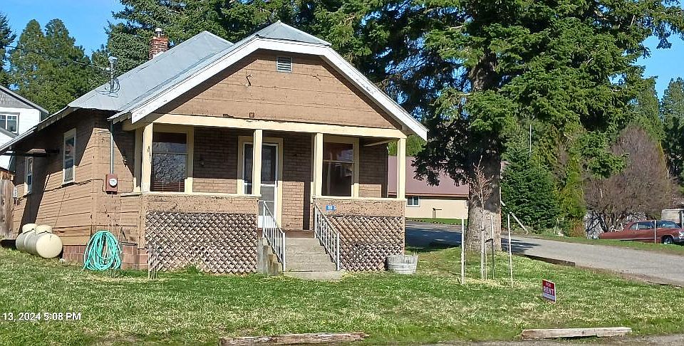 Living room has wood floors, a propane furnace with visible flame, large south and west-facing windows to brighten your day, and a front porch with a sunset view. Spacious kitchen with Pergo floors, electric appliances, breakfast nook, and lots of cupboard and pantry space. Large bedrooms have hardwood floors and big closets. Bathroom has tub/shower. Mudroom has full-size washer and dryer. Backyard has concrete patio, a nice grass area, and a storage shed with electricity and cement floor.