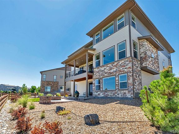 This 2-year-old home built by Shea Homes will impress with all it has to offer. The home sits on a premium homesite that backs to the gulch offering views of the trees and the wildlife that often meanders through the area. You'll enjoy the privacy that the backyard provides as you spend time on either the covered deck off the main floor or the patio with a gas firepit, accessed from the walk-out basement. On the main floor of the home, you will find a gourmet kitchen that is any chef's dream with double ovens, a gas cooktop with hood, island and huge pantry. The spacious great room features a contemporary cosmo fireplace and amazing views. On the main floor you will also find a home office, formal dining or living room space and a powder bathroom. Upstairs you will find a spacious primary suite with a 5-piece bathroom and a large walk-in closet. You will also find an additional three secondary bedrooms and each bedroom has its own bathroom. The spacious second-floor loft offers plenty of space for a playroom, TV room or exercise room. The finished basement is a dream for entertaining with its wet bar and theater sound system. You'll also find an additional secondary bedroom and bathroom in the basement. Other highlights include, Hunter Douglas top-down/bottom-up remote-controlled blinds through much of the home, landscape lighting, wired for security system, 2 water heaters, surround sound on main floor including the deck and a theater sound system in the basement. Schedule your private showing of this beautiful Whispering Pines home today!
