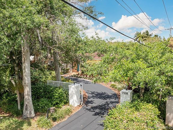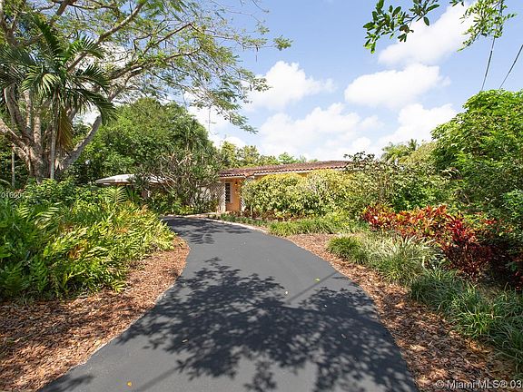 Highly sought after very deep acre with gorgeous perimeter landscaping in the heart of Pinecrest with McMansions popping up all around it. Classic gated ranch with almost 3000 sq ft and huge outside covered patio living areas and large sliding glass doors with tons of light. 4/3 with 4 covered carport spaces, large master bedroom, big eat-in kitchen, and more. Garage converted to cozy family room and 20 x 40 dome screened pool. Accordion and panel shutters.