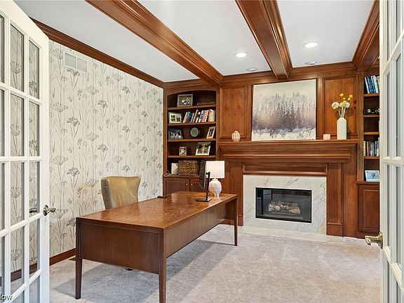 Welcome home to this custom luxury home in Wood of Wembley! Chagrin Falls School! Situated on a unique double lot, there are plenty of outdoor spaces to enjoy including large front porch, wrap around back deck, and newer playground. The gorgeous eat-in kitchen has just recently been updated and features customer cabinetry, marble island, stainless steal appliances and all new lighting. This home features a large and inviting great room with double sided fireplace leading into the “talking” room with walls of windows. The first floor is complete with an office, stunning dining room, large mudroom, recently updated ½ bath and laundry room. Make your way upstairs to the enormous Owner’s suite with 2 large closets and bath. Another guest room with ensuite and the other 2 bedrooms include a Jack & Jill bath. The finished lower level features a full bath, rec room w/ fireplace, bar and playroom. Make you way out the walk out sliders to a paver patio with firepit. Plenty of updates including: