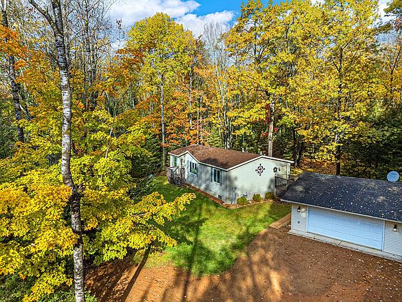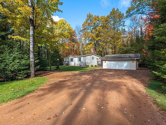 This 3 Bedroom and 2 Bathroom ranch manufactured home is positioned perfectly on the 1.61 acre admirably wooded parcel. There is a wooded town parcel abutting the back portion of the lot. The pleasant neighborhood also known as Leisure Estates is located close to St. Germain and all the recreational pleasures the Northwoods has to offer. The favored open floor plan with cathedral ceilings will definitely pique your interest as will the glass slider in the Dining Room to the deck with relaxing forest views. The Primary Bedroom with barn doors to the private Bathroom and a walk-in closet will draw your attention as will the lower level with rooms ready for you to finish for more living space. The detached 2 car garage will come in handy for your storage needs. This home is truly an attention getter and a must see to appreciate all there is to offer.