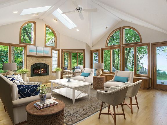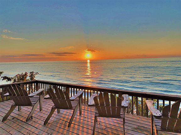 The quality of a Lake Michigan view varies by property, and the panoramic view from this property is priceless. The home is oriented towards the west and sits back and away from the bluff, perfect to capture and sunset and the ever-changing moods of Lake Michigan. It is truly amazing to watch a Summer thunderstorm roll-in. The home is casual on the outside with a great beach house feel. Plenty of space, good design and nice finishes. Lots of natural light and views. Comfortable. A small lawn and possibly room for a modest swimming pool overlooking the lake. Freshly painted inside and out. There is a beach and the new owner will need to install beach stairs. Glorious sunsets 12-months a year. If you are mesmerized by a great Lake Michigan view, then this is the spot for you.