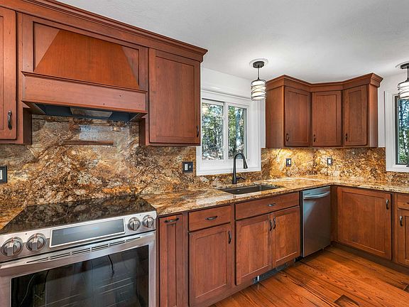 Wood fireplaceOversize garagePrivate deckPrivate wooded settingThird floor loftPrivate backyardUpdated kitchen
