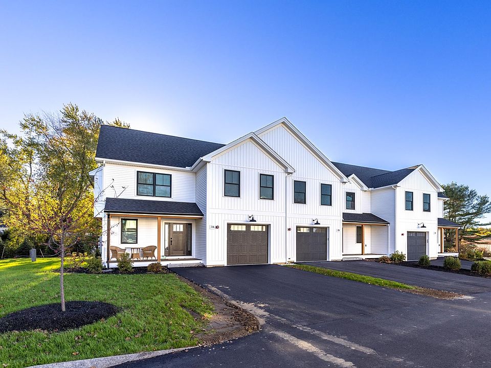 The Farmhouses at Founders Square is a beautiful townhome development located in idyllic Greenland NH. Built by custom builder, River Birch Builders, this home boasts over 2,000 sq.ft of living space, modern farmhouse charm, careful attention to detail, & a thoughtfully laid out floor plan. This middle unit includes 2 large bedrooms plus a separate office space/bonus room, 2.5 bathrooms, open concept kitchen & living space, a single car garage, full basement, a front porch, & back deck. Enter the home through the farmers porch lined with beautiful cedar columns. In the entryway you'll find shiplap detail with two coat closets and a half bath. Ahead is the open concept kitchen & dining area with views into the living room. The kitchen has a large kitchen island, pantry, choice of quartz or granite countertops, & a fully tiled backsplash. The living room is equipped with a gas fireplace & option to add a custom a built-in media center. White oak hardwood floors line the entire first floor & up to the second. On the second floor is a guest bedroom, full bath, office/bonus room, designated laundry room, & large primary bedroom. The primary bedroom has a substantial closet and beautifully tiled en-suite bath. Nearby Downtown Portsmouth & interstate 95. Within a 5 minute drive are multiple golf courses including Sagamore, Breakfast Hill, & Pease. Beautiful NH beaches are just a short drive away. **OPEN HOUSE - PLEASE VISIT UNIT 8B TO SEE MODEL UNIT**