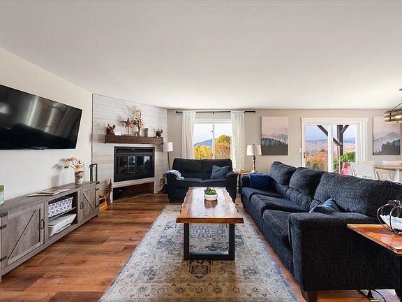 Affectionately known as "Chalet in the Sky" - Enjoy sweeping White Mountain views from this professionally updated 2-bedroom, 2-bath chalet ideally located minutes from Story Land, Attitash, and North Conway. This spacious mountainside condo offers an open-concept living area with large windows, a cozy fireplace, and deck access for year-round enjoyment. The kitchen features modern appliances, a breakfast peninsula, and seating for family gatherings. Comfortable sleeping for up to 8 with two queen bedrooms, a bunk bed, and a sleeper sofa. This turn key unit with proven STR history is perfect for year-round living, a vacation getaway, or an investment property in the heart of the Mount Washington Valley.