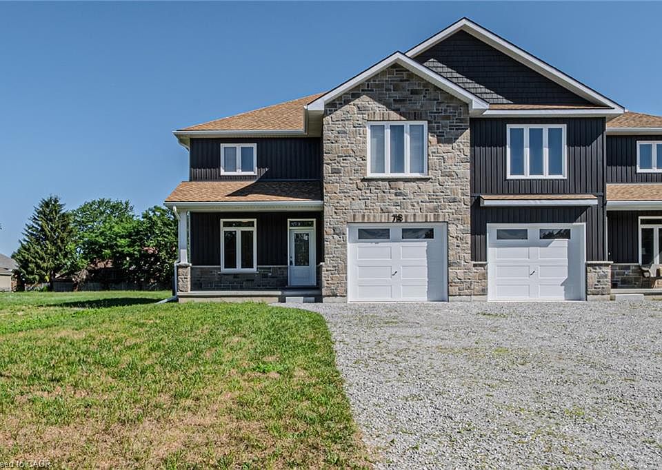 Custom-Built 2,118 Sq. Ft. Semi-Detached Home on a Deep Lot , Comfort, Style & Space in Simcoe Welcome to this beautifully crafted 2-storey semi-detached home offering 2,118 sq. ft. of comfortable living space on a generous 34 x 148 ft. lot. Featuring a large driveway and attractive stone front façade, this home makes a great first impression. Inside, the main floor features a flexible den/office or potential 5th bedroom, pot lights, high-end flooring, and a modern eat-in kitchen with quartz countertops, breakfast bar seating for three, walk-in pantry, and stainless steel appliances. The bright open-concept living and dining area is perfect for family time or entertaining. You’ll also find a 2-piece bath, mudroom off the garage, and an insulated 1 car garage for added convenience. Upstairs offers 4 spacious bedrooms, second-floor laundry, and a primary suite complete with a walk-in closet and beautiful ensuite featuring a double vanity, glass tile shower, and oversized floor tiles. A sleek 4-piece main bath serves the other bedrooms. Enjoy outdoor living on the covered front porch, and entertain with ease thanks to a rough-in for a natural gas BBQ in the backyard. Located in Simcoe, just minutes from schools, school bus routes, churches, shopping, and all daily essentials. Plus, you’re only a short drive to local wineries, breweries, and the sandy shores of Port Dover Beach. This home checks all the boxes,custom style, modern finishes, and a prime location. A must-see!
