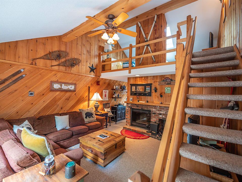 Very nicely updated townhome in the Bears Crossing community adjacent to the Mount Snow ski area with ski-home trail access. This private unit backs up to the woods, so it feels very quiet, yet is next to the clubhouse for easy access. Each unit has it's own private entry and covered front porch. Inside you are treated to a vaulted living space with wood burning fireplace, rustic exposed paneling, a new kitchen with new counters and cabinets, stainless appliances, updated flooring and side buffet, a master suite, guest bedroom with updated guest bath, half bath on the main level, and sleeping loft, washer/dryer, a separate mudroom space for snowy boots and gear, and a large rear deck for entertaining or to enjoy the sun. Bears Crossing amenities include shuttle to and from the base area, an in-ground pool for summer fun, large fire pit, tennis courts, club house with exercise equipment, tv, pool table, and ping pong, building maintenance, landscaping, snow removal, trash, recycling, and more. Don't miss out as this will go fast!
