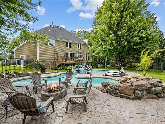 Back on the market due to buyer financing issues. Buyer did not perform the home inspection. This stunning 5-bedroom, 3.5-bathroom home, boasting 4100+ square feet of living space, was built in 2002 and showcases an array of modern updates and elegant features. Nestled in a professionally landscaped setting, this residence offers the perfect blend of luxury and comfort, enhanced by the resort-style ambiance provided by the stunning one of a kind concrete pool featuring a custom water fall and lazy river. The beautifully manicured lawn and lush greenery frame the grand facade, creating an inviting first impression. Dive into the sparkling pool or relax on the expansive patio, ideal for summer gatherings. The tranquil surroundings and mature trees provide a serene backdrop for outdoor entertaining. Inside, the home is designed for both functionality and style, with spacious living areas and the two story fireplace make open kitchen and living area perfect for entertaining. Enjoy the luxury of modern fixtures and finishes in the recently updated bathrooms, including a steam shower and jacuzzi tub. The well-appointed kitchen is a chef's dream, featuring high-end appliances, warming drawer, under cabinet lighting, and plenty of counter space. The updated basement offers additional living space, perfect for a home theater, gym, or recreation room. A rare find, the expansive 3.5-car garage provides ample space for vehicles, storage, and a workshop area. Located in a peaceful neighborhood with top-rated schools, this home is perfect for those seeking a tranquil yet connected lifestyle. Enjoy the convenience of downtown St. Charles with a variety of local shops, restaurants and nightlife just a short drive away. Plus 26 local parks with recreation like biking and walking trails, community pool, water park, splash pad and within 9 minutes of the river with kayaking, boating and fishing! AND, only one hour ride to downtown Chicago... This exceptional property at 7N035 Ridge Line Rd is a rare gem in St Charles, offering luxury, space, and a prime location...and NO HOA!