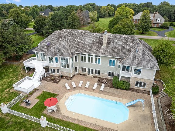 Welcome to Your Luxurious Sanctuary in Silver Glen Estates --- Step into unparalleled elegance with this exquisite custom ranch home, nestled in the prestigious Silver Glen Estates. This sprawling walkout ranch, boasting over 7,000 square feet, captivates with its majestic 12-foot ceilings in the main living areas and a beautifully designed layout. The grand vaulted foyer is flanked by the sophisticated study and formal dining room. Beyond, the expansive great room unfolds, featuring a stunning fireplace with built-in shelving and custom millwork and oversized windows that frame picturesque views of the pristine yard with in-ground pool. The seamless blend of natural light and architectural grandeur is truly breathtaking. The gourmet kitchen is a chef's dream with extensive counter space, custom cabinetry, a prep sink, and walk-in pantry. Adjacent to the kitchen, the sunlit breakfast room offers serene views of the backyard and access to a sun-drenched sunroom, complete with skylights and a door leading to the newly refinished two-tier deck. The master retreat, situated on back side of the home for ultimate privacy, is a haven of luxury with its expansive walk-in closet and a see-through fireplace to the master bath. Enjoy private moments on the master's own balcony, overlooking the lush pool area and landscaped grounds. Two additional spacious bedrooms, on this level, share a well-appointed full bath with double sinks. An open staircase with striking two-story windows leads to the spacious walkout basement, designed with entertaining in mind. This lower level features a vast family recreation area, a large bar, a pool changing room with an adjacent half bath, and a doggy day room. A thoughtfully designed bedroom suite with a full bath and generous closets offers ideal accommodations for guests or in-laws. Additionally, this level includes another bedroom, ample storage space, and convenient access to the 3+ car garage. Step out from the basement to the inviting paver patio surrounding the sparkling in-ground pool, with plenty of lawn space for recreation and enhanced privacy provided by lush mature landscaping. This home offers the convenience of private utility services for water and sewer, ensuring no need for well or septic maintenance. Situated in a serene luxury neighborhood, yet just minutes from Randall Road, the Fox River, and downtown St. Charles, you'll enjoy easy access to award-winning amenities and highly acclaimed D303 schools. Seize the opportunity to make this stunning residence your own, where every day feels like a luxurious retreat. Hard to believe this gem is not sold -- Quick close possible.