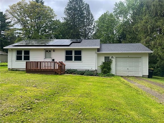 Charming village ranch conveniently located in the village of Sidney. Delightful 2 bedroom and 1 bath residence that perfectly blends comfort, style and convenience. Lots of new updates add to the quality. Electric and solar heat make the home very affordable. The living area is designed for relaxation with large windows that create a warm and inviting atmosphere. Large Eat in kitchen and laundry area. Nice sized double lot with attached 1 car garage. Full dry basement could be finished off or used for storage. Ready to move right in! Walking distance to all amenities!