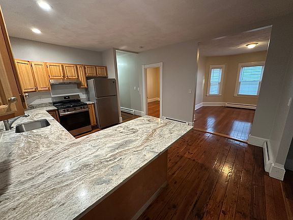This updated 1,200 sq. ft. first-floor apartment blends space and style just steps from Winthrop Beach. Inside, three roomy bedrooms complement an airy layout with newly painted walls and gleaming hardwood floors. The kitchen shines with brand-new granite countertops and stainless-steel appliances including refrigerator, stove, and dishwasher while an in-unit washer and dryer add everyday ease. Central heating and air conditioning keep the home comfortable in every season. Outside, enjoy a private deck and backyard for relaxing or entertaining. A corner bus stop offers a quick ride to Orient Heights Station for an easy Boston commute, and optional parking is available for extra convenience.