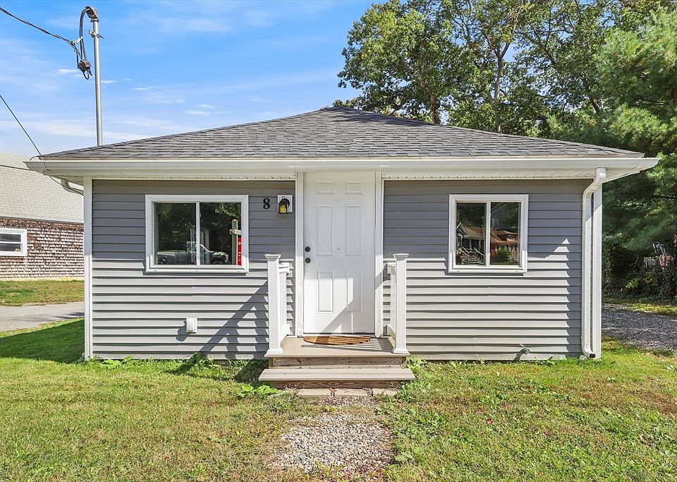 Charming bungalow-style home nestled in a quiet lakeside community, just steps from the water. This renovated single-level home features 3 bedrooms and 1 bathroom, blending peaceful surroundings with easy access to the lake. Inside, you’ll find a bright, open living area with newer flooring throughout. The updated kitchen showcases butcher block countertops, a cozy coffee nook, and generous pantry space. Fully remodeled in 2022, the home includes newer windows, flooring, vinyl siding and a newer septic system,. The property offers water views and plenty of outdoor space, giving you the flexibility to create your ideal outdoor retreat. With gas heat and brand new mini-split, comfort is ensured year-round. Conveniently located near the commuter rail, shopping and dining.