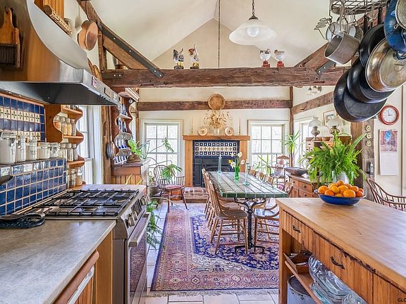 By the time written legal deeds first appear in the area in 1792, the Farm at Sluyter Hill was established & prospering. On 100+ acres the property is comprised of an antique farmhouse, a post & beam barn & a guest cottage. Set into the hillside the sprawling main house is welcoming, comfortable, the epitome of understated elegance. 4 BRs, 2 full baths, 3 fireplaces, hand hewn beams & playful terracotta tiles. In the guest cottage an open plan kitchen & LR border a single BR, & a spiral staircase leading down to a cozy lounge with a wood stove. There's a post & beam barn built with exceptional quality with horse stalls, antique windows, & a pottery studio. The property has more than two miles of trails and 5 acres of pasture. 2:45 to NYC, 45 min to Hudson, 25 to Albany & 20 to Amtrak.