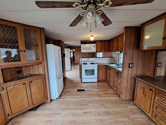Bring back the sparkle to this older mobile home that has a newer furnace, metal roof and nestled on an outside lot with shed and landscaping. Laminate floors, town water and sewer, indoor cats and small dog allowed. This is a family park although mostly seniors live here. May need approx. 30% down payment for financing or cash. Bring your imagination with you. Even with it's cosmetic work, it still beats paying rent.