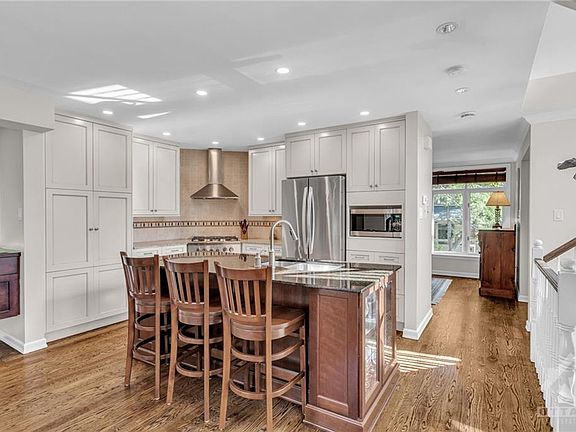 Experience the ideal lifestyle in this Hobin-designed home, nestled in the vibrant community of Old Ottawa South, across from Osborne Park with canoe and kayak access to the Rideau River. Located on a quiet cul-de-sac, the home's sun-filled open-riser staircase serves as a stunning focal point. The spacious main-floor family room/bedroom suite, complete with a full bath and double closet, offers direct backyard access. The inviting living room with a cozy fireplace flows seamlessly into a beautifully crafted kitchen with a central island. The elegant dining room, with large windows, provides lovely views of the mature, tree-lined neighborhood. Upstairs, the impressive primary bedroom features a cathedral ceiling, palladium window, large walk-in closet, and vaulted, skylit ensuite bath. This exceptional location offers everything at your doorstep: Hopewell Public School, Carleton University, the Canal, Lansdowne, Brewer Park, the Ottawa Tennis Club, Lansdowne and more. Rare Opportunity!