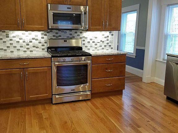 Available March1st! This is a gorgeous, very well maintained and recently remodeled unit. This second floor unit includes a beautiful and newly remodeled kitchen with all stainless steel appliances, new granite counter tops, beautiful cabinets and a very stylish back splash. The kitchen also has space for a table and 4 chairs. In addition to the eat in kitchen there is also a very nice formal dining room large enough for an 8-10 person table or can be converted for other uses and it's double doors into the living room make it an ideal entertainment set up. 2 full size bedrooms and an addition half-size bedroom/office with access to a private use outdoor second floor deck. Laundry in the basement is not shared as each unit has it's own washer and dryer.