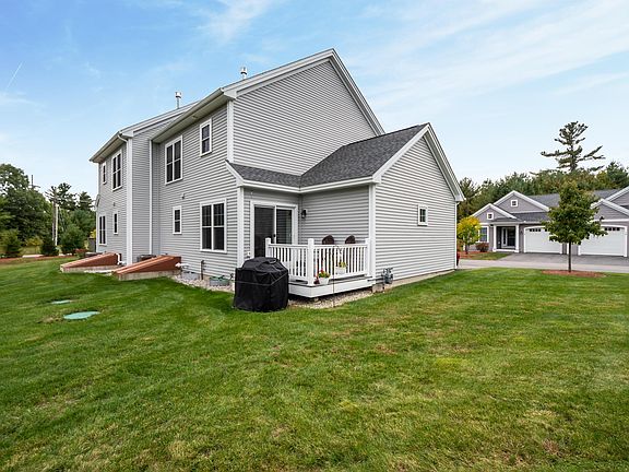 Welcome to Amherst Fields...Community...Country Setting...Desirable Location. Just a few words that come to mind when describing this adoring home. Only 2 years young, this 2 bedroom, 2 bath townhouse offers so many lovely features. The expansive living room includes an inviting gas fireplace and a bay window looking over the front yard; the dining room is completely surrounded with windows and the sliding glass door to the deck providing gorgeous natural light; the kitchen features granite counters, lots of cabinets, stainless steel appliances and hardwood flooring throughout. An attached garage with automatic door and oversized deck overlooking the grounds are added comforts making this home so special. The basement is perfect for storage and may have the potential for finishing. This development is a 16 unit luxury Workforce Housing Condominium Development conveniently close to shopping, dining and Rte 101A.
