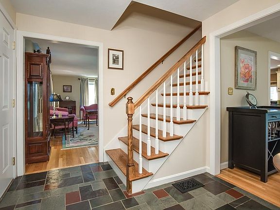 Welcome to this gorgeous, one owner, meticulously maintained colonial on a three house cul-de-sac! First floor boasts a huge kitchen with center island, dining area and tons of cabinet space! Step down into a lovely dining room with french doors to the deck. The family room also leads you to the amazing composite deck with a beautiful retractable awning. This large deck overs looks your level yard and private woods in the back. Beautiful formal living room in the front of the house. Wonderful hardwood floors & tile throughout. A mud area off of the garage and laundry room finish off the amazing first floor. Second floor has an elegant master bedroom with walk-in closet and tiled shower stall. There are three other immaculate and generous sized bedrooms. Third floor has private whirlpool tub with skylight! Two car attached garage, Central Air, young roof and backup generator leave nothing to be desired in this exquisite home!