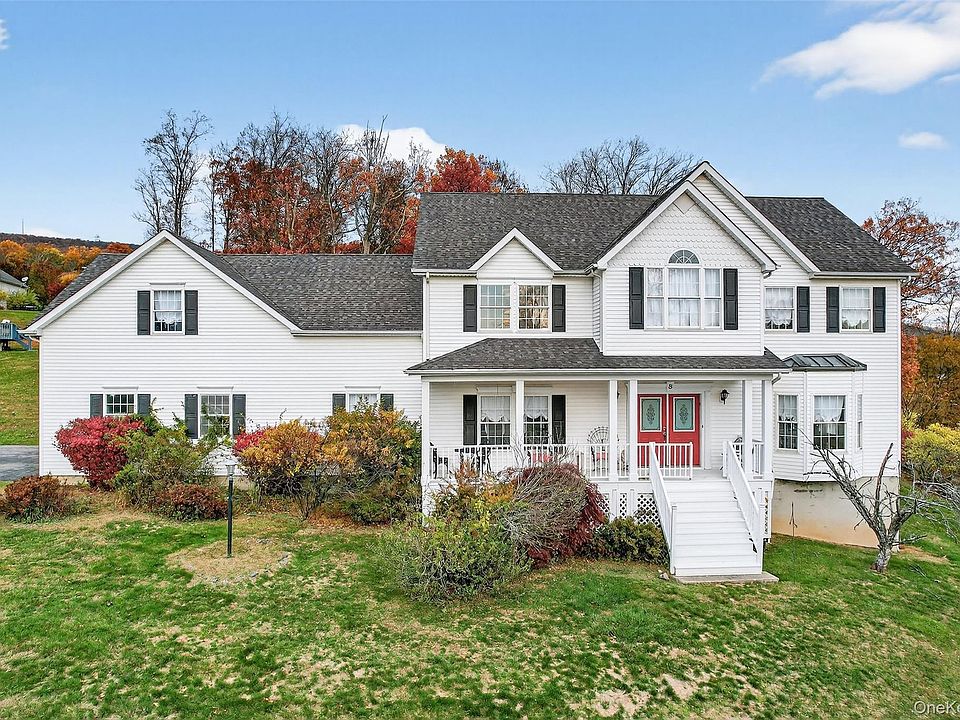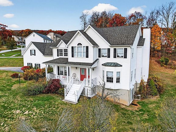 Welcome to this beautiful center hall colonial in Highland Mills' Brigadoon Community. Proudly offered by the original owners of over two decades years, this wonderful home features a custom layout that makes it truly special. A welcoming front porch invites you into the main foyer, where you’ll find a spacious living room to the left and a formal dining room to the right — perfect for gatherings and holidays. The kitchen with it's dark wood cabinetry with ample storage, sleek quartz countertops and stainless steel appliances is designed with comfort and functionality in mind, featuring an island with a prep sink, a main sink for cleanup, and a spacious eat-in area. The kitchen opens to the family room, complete with a fireplace that adds warmth and charm — ideal for relaxing nights in. Beautifully refinished hardwood floors, fresh paint, and a back deck for outdoor enjoyment make the main level shine. You’ll also find a den/home office, full bathroom and access to a spacious two-car garage on this floor. Upstairs, the primary suite includes a spacious bedroom with vaulted ceilings, private bath, and three additional nicely sized bedrooms with lots of closet space — and a bonus room with vaulted ceilings- a great space for a home gym, an additional home office, a playroom-whatever suits your lifestyle. A laundry room, a full bathroom and walk-up attic provide even more convenience and added storage to finish off the second floor. The layout is unique and personalized as the owners requested well thought out modifications to the original plans creating more ease and functionality. The walkout basement has sliding glass doors that lead to the backyard and offers great potential to finish it for additional living space. Set high on the property, the home enjoys beautiful views of the surrounding area. Living in Brigadoon means you’ll have access to great community amenities — including a clubhouse, pool and tennis courts. You’re just minutes from Woodbury Common Premium Outlets, local shops, restaurants, parks and schools. The Town of Woodbury also offers residents access to its private pool, lake, and recreation areas. With easy access to major highways and a quick commute to New York City, this home truly offers the best of both worlds — peaceful suburban living with convenience all around. MW schools. Schedule a showing today!!