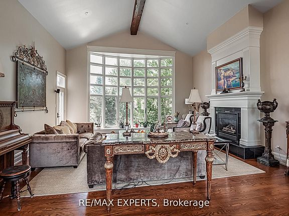 A Must-Have for Sports Enthusiasts - Previously Owned by Legendary Canadian Hockey Goaltender Curtis Joseph Welcome to this stunning executive bungalow nestled on nearly 2 acres in the prestigious enclave of Aurora Estates. Boasting over 5,100 sq. ft of pure luxury, this home features 10-foot ceilings, 8-foot doors, and exceptional designer finishes throughout. Step into the sunken living room with a two-sided fireplace, perfect for entertaining or relaxing in style. The grand primary suite offers a spa-like 7-piece marble ensuite and an enormous walk-in closet. The gourmet kitchen is a chef's dream, equipped with a Wolf stove, Sub-Zero refrigerator, and elegant custom cabinetry. The fully finished walk-out basement is a true entertainer's paradise, featuring a pub, wine cellar, gym, hockey training room, games room, home theatre, and direct access to a beautifully landscaped yard with pool, cabana, hot tub and multiple sitting areas with wood burning fireplaces. For the car enthusiast, there's also a newer detached 2-car garage in addition to the main 3 car garage.