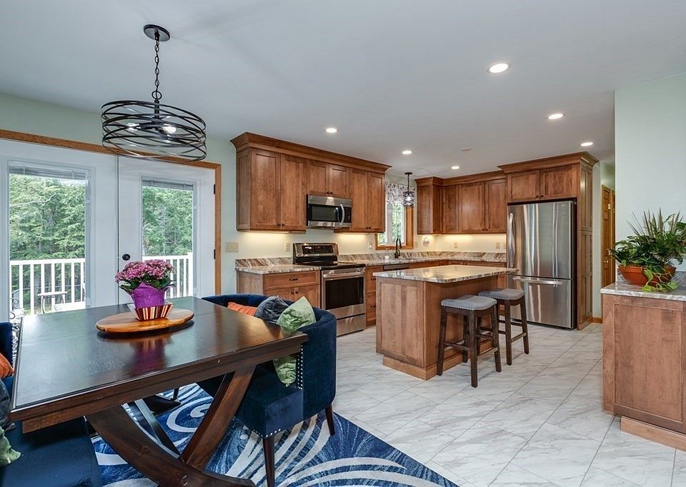- Features: Flooring - Hardwood, Flooring - Wood, Dining Area, Countertops - Stone/Granite/Solid, Kitchen Island, Breakfast Bar / Nook, Cabinets - Upgraded, Deck - Exterior, Exterior Access, Remodeled, Slider, Stainless Steel Appliances