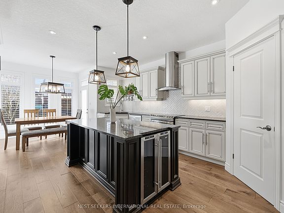 A sense of sophistication in a coveted neighbourhood. This 3,200+ sq. ft. detached residence offers 4 bedrooms, 3 bathrooms, an expansive third-level loft, and a main-floor office/flex room - all wrapped in a thoughtful, non-cookie-cutter layout that feels both elevated and effortless. Sunlight pours through every level, giving the home a bright, uplifting ambiance from morning to night. The main floor impresses with 9-foot ceilings, real hardwood floors, a warm gas fireplace, and a beautifully designed kitchen featuring upscale cabinetry, a chic backsplash, quartz countertops, a spacious island with storage, stainless steel appliances (including a bar fridge), and a coveted walk-in pantry. It's a space crafted for both everyday comfort and seamless entertaining and also offers ample dining space. Upstairs, the primary suite feels like a private retreat with a soaker tub, separate shower, and a generous walk-in closet. The additional bedrooms offer impressive scale, and the third-level loft adds a striking "wow" factor-ideal as a lounge, creative studio, office, or playroom. Second-floor laundry and expansive neighbourhood views over Pineridge/Westminster Woods complete this thoughtfully planned level. The unfinished basement - with a bathroom rough-in - provides endless potential for future customization. Outdoors, a fenced yard, private deck with glass railing, interlock patio plus tastefully landscaped front and rear gardens create a serene backdrop for quiet mornings, relaxed evenings, or gatherings with friends and family. Situated in Guelph's highly desirable South End, you're moments from parks, Longo's, Zehrs, Food Basics, bakeries, ethnic eateries, salons, and scenic walking trails. Light-filled, functional, and rich with character - this home stands apart in all the right ways.