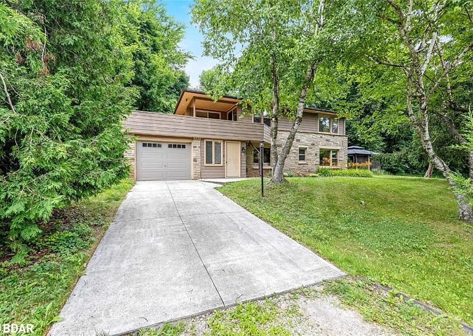 Tucked away down a private laneway in a quiet cul-de-sac affectionately known as “Happy Valley”, this over half-acre property is loaded with character and potential, and offers a unique setting. Surrounded by mature trees and complete with your own share in a protected 1.096 acre parcel of greenspace with access to Silver Creek just across the drive, this is a private park-like retreat rarely found within town limits—and yes, it's on municipal water. This charming custom-built residence blends warmth, character, and everyday functionality. The inviting stone feature wall and gas fireplace in the family room create the perfect ambiance for cozy evenings, while the eat-in kitchen, formal living room, main floor laundry, and a 2-piece powder room offer thoughtful convenience for modern living. Upstairs, you'll find four generously sized bedrooms, two of which walk out to a dreamy storybook deck nestled in the treetops—ideal for morning coffee or stargazing at night. A 4-piece family bathroom serves the second floor, offering comfort for the whole crew. Parking is effortless with a private drive, parking pad, and a tandem 2-car garage. Whether you're hosting a garden party under the shade of willow trees or exploring the peaceful creek in your shared forest, this is a home that invites you to slow down and take the time to build memories with loved ones. All just minutes to Glen Williams, downtown Georgetown, a short walk along the nearby trail system to the GO, and only 17 minutes to the 401. This isn't just a place to live. It's a place to love. Welcome to Happy Valley!