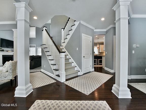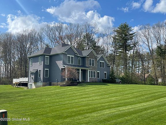 Highest/ Best due my Mon. 12pm. Nestled in the sought after Burgoyne Estates, this stately home offers luxury and convenience. Less than 10 minutes from Saratoga Lake, Downtown, I-87 Exit 14, and Wilton's shopping, and in Schuylerville School District. The meticulously maintained lawn features an upgraded well and sprinkling system. A private backyard offers a spacious patio, hot tub, and manicured landscaping. Inside, enjoy crown molding, custom millwork, an open staircase, and a gourmet kitchen with a large island. Cathedral ceilings and expansive windows fill the home with natural light. The finished basement, with an egress window, is ideal for a recreation room, office, or bedroom. Upstairs, the primary suite is a retreat, joined by three large bedrooms and two full baths.
