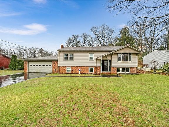 Highest and best offers due 4/8 @ 5pm. Welcome to 8 Arrowhead Trail, a lovely raised ranch home offering 3 bedrooms/ 2.5 baths with a partially finished basement and inground pool. The main living level is versatile with an open living/kitchen/dining floor plan with an impressive stained wood Cathedral ceiling and skylights. The open kitchen has a contemporary feel with warm stained cabinets, stainless steel appliances, corian counters, center island, and designer pendant lighting. There are three bedrooms off the main hall, the primary boasts an en suite powder room, and a full bath. The laundry area is conveniently located on the main level as well. The hardwood floors are refinished and newer windows throughout. In the finished basement find a comfortable family room with a wood burning fireplace, full bath, and two additional multi-functional rooms. The raised back deck is off the dining room and leads to the expanded backyard oasis that is perfect for summer entertaining. The roof is 5 years young and the driveway has been resurfaced for you. The home is also in a terrific location just down the road from the Smithfield High School, recreation areas, shopping/dining, and quick access to 295. Be sure to book your showing today!