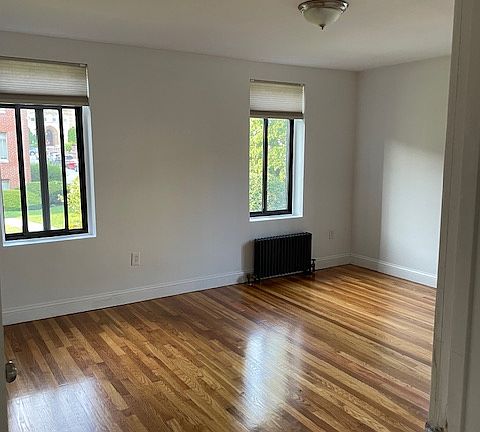 The entire unit has been freshly painted and features high ceilings, numerous windows, a spacious living room that faces the courtyard, and a large kitchen with ample storage space. The gleaming hardwood floors have been freshly treated and extend throughout the unit.
