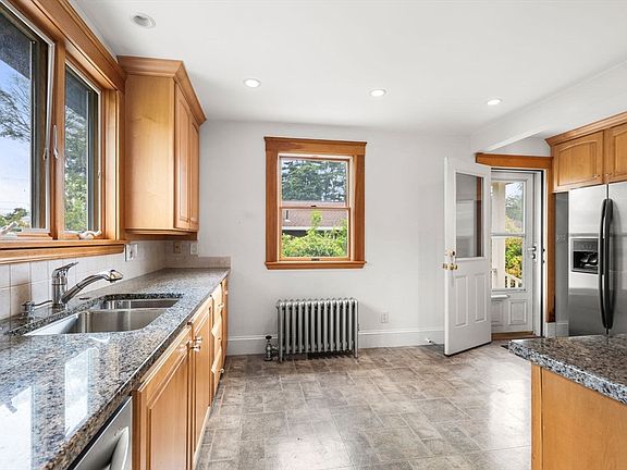 Charming 3BR/2BA Bungalow with Flexible Living Space: Move-in ready and full of character, this sunny bungalow features a oversized living room with wood-burning fireplace, a versatile office with French doors—perfect for remote work or study, dining room with access to an oversized deck, and a corner kitchen with granite counters and stainless steel appliances. Two bedrooms and a full bath are located on the main floor, with a spacious third bedroom, bonus area, and full bath upstairs—ideal for guests or flexible use. The spacious basement offers a laundry room, workshop, and additional bonus room. Enjoy a large private yard, one-car detached garage, and ample off-street parking. Convenient location with easy access to highways and commuter rail. A wonderful blend of charm, space, and potential! Offer Deadline 6/24/25 @ noon.