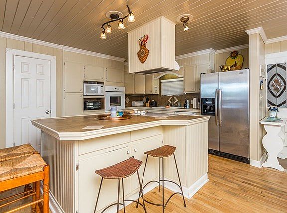 Renovated in 2006. Ocean front cottage offers 4 BR and 3.5 baths. Relaxing is made easy in this open and inviting floor plan. Kitchen with island on main level. Windows across the back of home capture the ocean view. French doors off Dining/living area lead to back porch. Master suite on each level. All guest rooms on ground floor. Upstairs offers spacious family room with fireplace and french doors leading to your upper back porch. Outdoor shower off deck/porch area. Single carport with storage room.