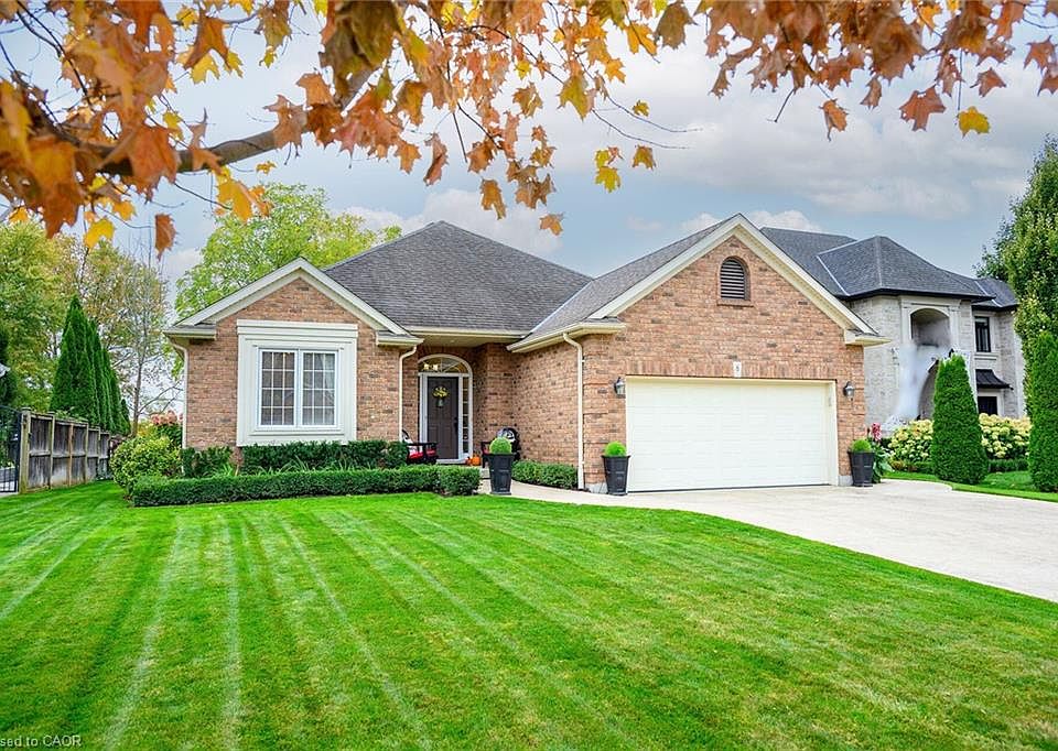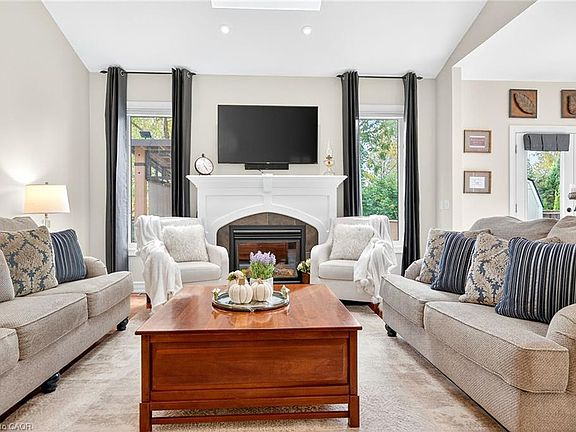 Luxurious Custom Built, 2+1 Bedroom Brick Bungalow! Located in one of the most desirable areas of Fonthill among other luxury homes & only steps to Steve Bauer trail. This exquisite home boasts a modern, open concept design with soaring ceilings on main level. Numerous recent updates with premium craftsmanship are evident throughout this elegant home. New (2022) gourmet kitchen open to great room with abundant cabinetry, large island, Quartz counter tops and backsplash, porcelain floors, 7 new kitchen appliances. Great room with cathedral ceiling, hardwood floors & gas fireplace. Gracious dining room with vaulted ceilings. New (2022) main floor laundry cabinets & sink. New washer & dryer (2025). Spacious primary bedroom with 5-piece ensuite bath and walk-in closet. Open staircase to newly finished lower level (2022) leads to bright rec room, bedroom, 3-piece bath, hobby room. Kitchenette/bar with sink, dishwasher & bar fridge. Fruit cellar. Glass doors from kitchen leads to very private backyard oasis (New 2025) complete with gazebo, large custom shed, expansive concrete patio & manicured grounds. OTHER FEATURES INCLUDE: 200 amp service, c/air & furnace (new 2020), sprinkler system, back-up Kohler generator. Great room wall-mounted tv, primary bedroom wall-mounted TV. Garage door opener, all window treatments. Rare opportunity to own a highly upgraded, move-in ready custom home in exclusive location with walking distance to trails, shopping & parks. Only minutes to vineyards in Niagara’s wine region, golf courses, fine dining & easy highway access.