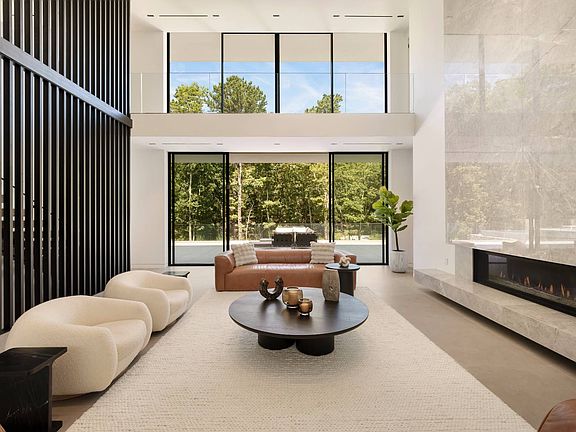 Set amidst lush greenery in one of the Hamptons' most serene enclaves, this breathtaking 10,585-square-foot contemporary estate is a true sanctuary of modern luxury and architectural brilliance. Designed to seamlessly integrate with its natural surroundings, this seven-bedroom, seven-bathroom residence offers an unparalleled living experience, combining sophisticated design with state-of-the-art sustainability. A grand column-free interior creates an uninterrupted flow throughout, enhanced by floor-to-ceiling sliding glass doors that dissolve the boundary between indoors and out. Expansive terraces overlook a tranquil forest, while an infinity-edge pool and sundeck offer a private oasis for relaxation. The 22-foot double-height great room is an entertainer's dream, featuring a monumental Grigio Argentato marble fireplace framed by double book-matched supersize slabs. The main floor impresses with 10'6" ceilings and a stunning Italian-designed kitchen by Archlinea, boasting European Oak Fossil cabinetry, Calacatta Bettogli Extra marble surfaces, and a full suite of Miele appliances. Crafted with impeccable Italian finishes, the residence exudes elegance at every turn-from Listone Giordano European Oak flooring to Casabath vanities, Gessi fixtures, and White Carrara marble in the primary suite. A lower-level wellness retreat elevates this home to the pinnacle of indulgence, featuring a state-of-the-art gym, EFFE sauna and hammam, a home theater, and an entertainment lounge with a wet bar and pantry. Frameless Italian Barausse doors add a refined touch throughout. Sustainability meets sophistication with low U-value windows, solar panels, and an ultra-durable concrete structure, ensuring an eco-conscious footprint. A two-car garage with additional storage completes this extraordinary offering. This architectural gem is a rare opportunity to own a Hamptons masterpiece-where modern design, luxury, and nature exist in perfect harmony.