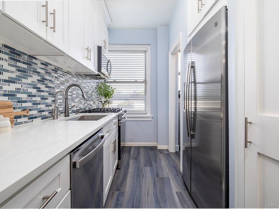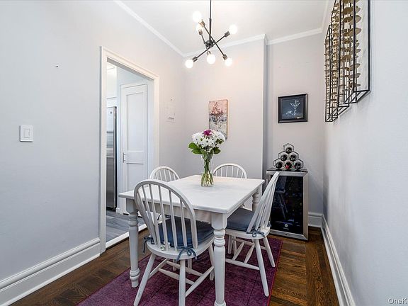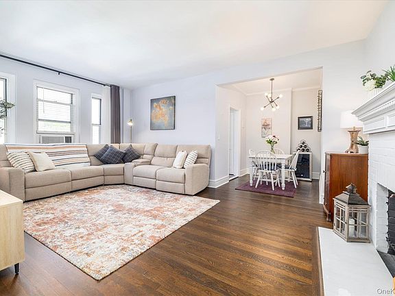 A pre-war gem and commuter's delight! Apartment 4J features 10 foot ceilings with a spacious foyer that leads into an open-concept living room/dining room with dark, warm hardwood floors and a wood-burning fireplace to keep you cozy. With baseboard molding and floor-to-ceiling curtains, this apartment exudes warm sophistication. The kitchen features a coffee bar/pantry, stainless steel appliances, quartz countertops, and custom cabinets. This apartment has no shortage of closet space, with 2 large closets in the foyer (potential to add a half bath) and 2 large his-and-hers closets in the bedroom that more than comfortably fits a king-sized bed. The en-suite bathroom has been recently gut renovated. With pristine condition, low maintenance, close proximity to the LIRR for an easy commute, and restaurants/shops within walking distance - this is a move-in ready gem you don't want to miss!