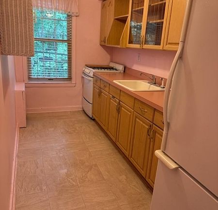 Freshly painted 2nd floor unit. Spacious rooms, hardwood floors, oak cabinets in kitchen. Wall and window AC units. Laundry room on premises w/new washer, dryers. Storage area located in the basement of each building.