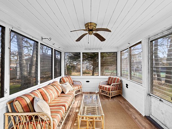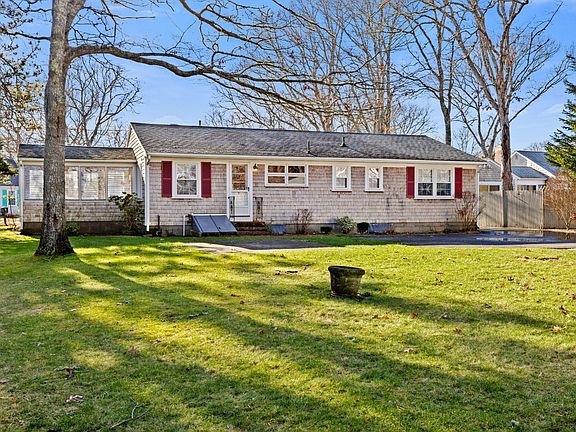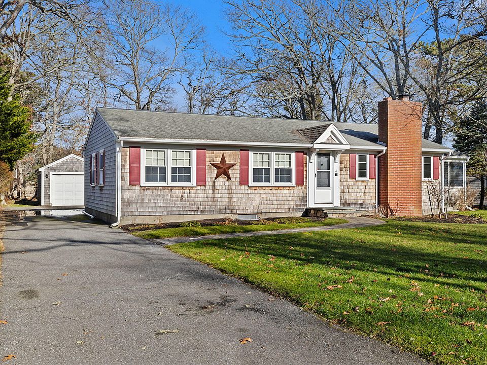 Discover this charming South Yarmouth gem w/ end-of-street water access for kayaking or swimming. Perfect for year-round living, weekend getaways, or investment opportunities, this single-floor home boasts beautiful curb appeal w/ updated siding & professional landscaping. The spacious, partially fenced backyard features an irrigation system, patio, privacy, and detached 1-car garage. Inside, enjoy an oak cabinet kitchen w/ Formica countertops, dining area, living room w/wood-burning fireplace, 3-season room, and three bedrooms w/ hardwood flooring. The two full baths offer new owners the chance to add their own updated flair.Full unfinished basement with laundry, providing ample storage and potential. Conveniently located near golf courses, beaches, &restaurants. Explore this waterway to Nantucket Sound & enjoy fishing and boating. Situated on a quiet, shaded street neighborhood w/in half mile of village amenities & Bass River Golf.