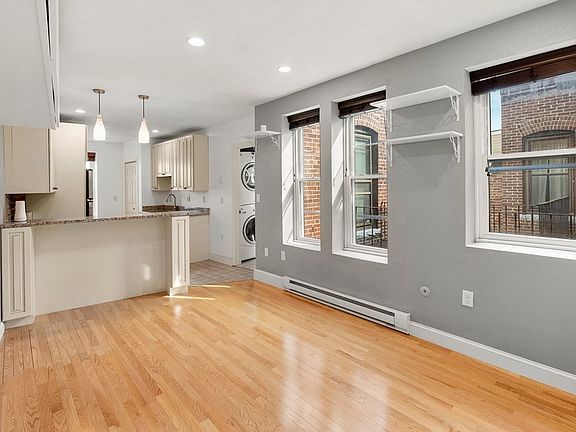 Surrounded by historic restaurants, parks and monuments, this North End home is in the heart of it all. Thoughtfully updated with space in mind, this quiet, top floor unit is the perfect place for young professionals and couples alike. Storage is easy with custom built-ins throughout, as well as a lofted bedroom allowing for a convenient office space or extra storage. The brand new, common roof deck is just one floor up, perfect for enjoying 360 views of the city skyline and Boston Harbor. Abundant windows let in a ton of natural light as well as a great sea breeze during warm Boston summers. During the winter, this unit stays cozy and comfortable with quality insulation and heating zones in each room. The beautiful kitchen is perfect for home cooking with generous counter top space, ample cabinets, and bar stool seating. In-unit laundry and beautiful hardwood floors round out this lovely, move-in ready home.