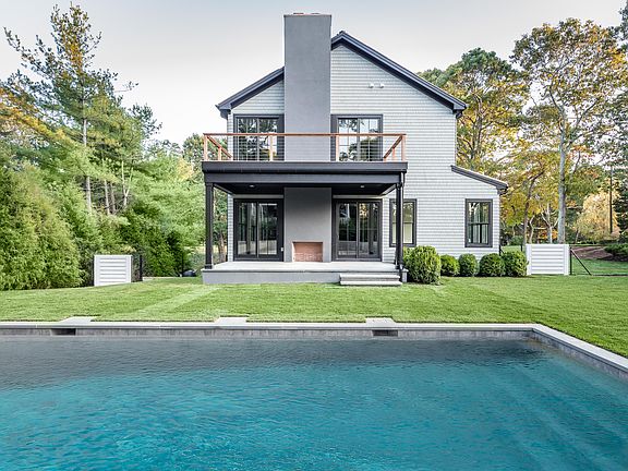 Enjoy exceptional design and expansive living space in this new-construction four-bedroom, four-and-a-half-bathroom Southampton masterpiece, brought to you by the revered JNS Development Group. Warm, contemporary minimalism is the hallmark of this gracious 4,000 square-foot residence. White art walls are topped in shiplap vaulted ceilings and custom lighting. Blonde wide-plank hardwood runs underfoot, and bold black millwork and gold hardware punctuate the home with drama and intrigue. Seamless indoor-outdoor living and impeccable entertaining are the norm thanks to a wide-open floor plan and lush outdoor space. Arrive on the lower level, surrounded by windows on three exposures, to find a stately fireplace, a generous footprint for living and dining areas, plus a cozy private den. The open chef's kitchen is a work of art featuring premium integrated appliances and dark custom cabinetry highlighted chic pendant lighting. A mudroom entry off the two-car attached garage, extra closet space and a powder room add effortless ease to this well-planned level. Upstairs, the serene master suite features a massive custom closet, spectacular private balcony and a spa-inspired en suite bathroom with stunning tile, a freestanding soaking tub, large rain shower and floating double vanity. Three more bedroom suites -- each with a private bath and a roomy closet -- ensure plenty of room for friends and family, while the large laundry room with utility sink makes laundry day a breeze. Outside, the nearly 1/2-acre grounds boast rolling lawns and landscaping, a covered patio, outdoor fireplace, and a 17-foot by 34-foot heated gunite swimming pool, securing this home's position as an entertainer's haven and outstanding Hamptons retreat. Situated in the private Southampton Shores beachfront community where residents enjoy a marina, community bay beach, sports courts and fields, and easy access to both Southampton and Sag Harbor Villages.