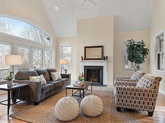 The Woodlands at Belmont Hill. This elegant "Belmont" style townhouse is an end unit and sited on a small lane that abuts Lone Tree Hill Conservation. The main level's open concept floor plan offers easy living and features a personal elevator, soaring cathedral ceilings, hardwood floors, a gas fireplace, dining area and a slider to an oversized deck. The gourmet kitchen, with granite countertops, a seating peninsula and wood cabinets, is spacious and overlooks a sitting area. Half bath and laundry closet are located in a hall that leads to the attached two car garage. A lovely primary en suite boasts two walk-in closets, a bath featuring 2 vanities and a shower. A staircase leads to a loft, accented by built-in bookcases, two bedrooms and a full bath. A walk out lower level includes a bedroom, full bath and a family room with built-ins and a slider - perfect to use as a study, exercise or entertainment room Close to conservation trails, shops, restaurants, major routes, Camb. and Bos.