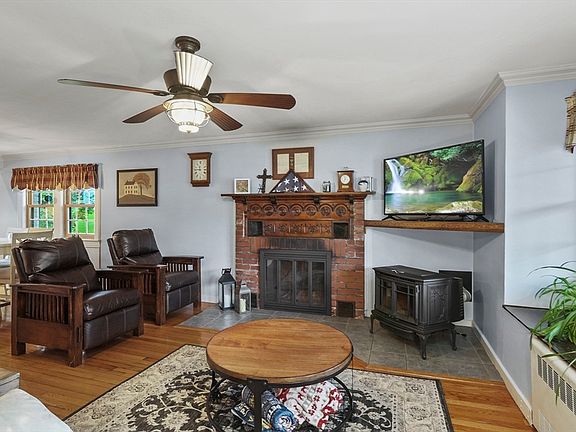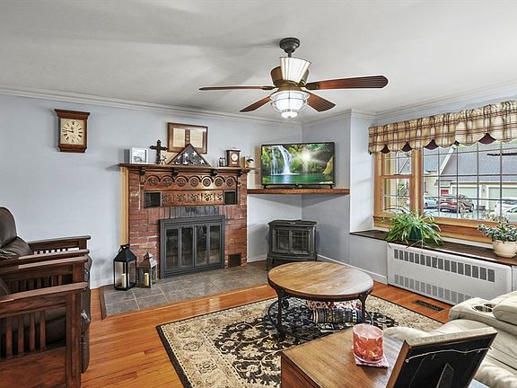 Welcome to this charming 3-bed, 3-bath Cape-style home, perfectly nestled in a desirable Shrewsbury neighborhood. As you enter inside, you'll be greeted by hardwood floors throughout. The living room is the perfect spot to unwind, featuring a wood-burning fireplace, pellet stove, & a large picture window. The heart of the home, the kitchen, boasts vaulted wood ceilings, SS appliances, & granite countertops, while the dining room provides an ideal setting for gatherings. The 1st floor also features 2 bedrooms & a full bathroom, along w/ a handy mudroom entryway. Upstairs, you'll find the 3rd bedroom, a dedicated home office, & another full bathroom. The finished basement offers even more flexible living space w/ a rec room, bonus room, & a 3rd full bathroom. Enjoy your morning coffee on the back deck, which overlooks the spacious backyard. Additional features include a heated, oversized 2-car detached garage. Great central location w/ easy access to local amenities & major routes!