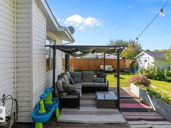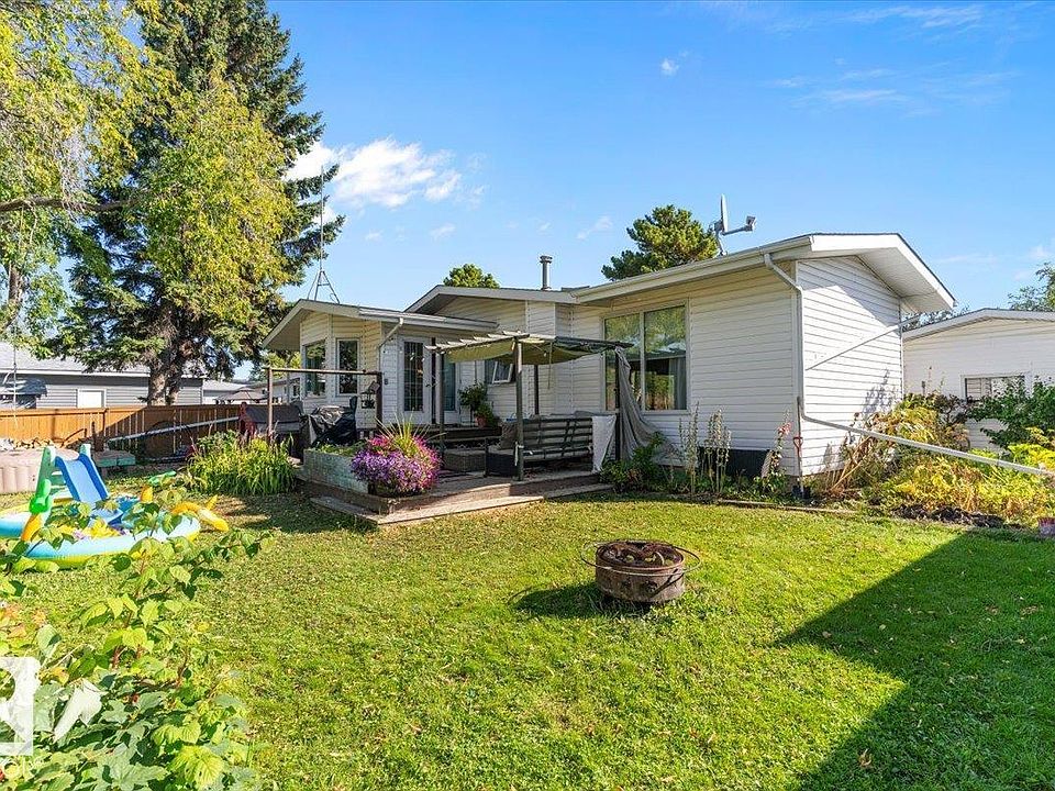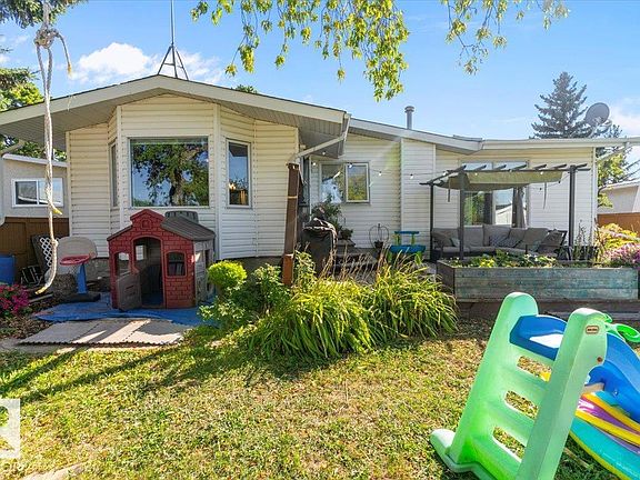 Welcome to 8 Beaverhill Drive in the charming community of Tofield! Great family home with fenced yard and double detached garage! Open design of sunny, sunken living room and dining area greets you upon entering this lovely home. Your gourmet kitchen has lots of counterspace, oak cabinetry, island, and large dinette area with access to your outside deck. Primary bedroom with 2pc ensuite, 2nd & 3rd bedrooms, and 4pc bathroom completes the main floor. Basement is finished with huge family room with wood burning fireplace, den, bedroom, 3pc bathroom, laundry room, and storage room with cold room. Back yard is beautifully landscaped with mature trees, flower beds, shrubs, perennials, raspberry bushes, and vegetable garden. Awesome neighborhood and walking distance to park, playground, and Schools. A must see !!!