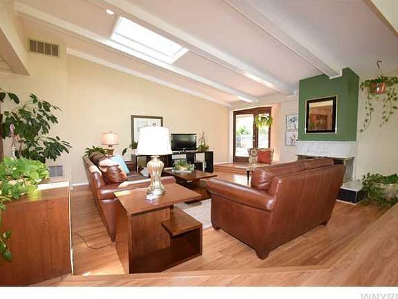 BEAUTIFULLY EXPANDED 2567 SF CONTEMPORARY HOME IN AMHERST*SUNFILLED 20X19 FR ADD W/CATH CEIL-SKYLIGHTS, MARBLE FP, '15 NEW FLOORING. FORMAL DR ADJ TO FR & BRIGHT KIT W/ISLAND. LR W/OPEN STAIRCASE TO 2ND LIVING AREA. 1ST FLR HAS LNDRY, UPDATED MAIN BATH & 3 BDRMS. UPPER LEVEL FULL SUITE HAS A GREAT FLR PLAN & MANY OPTIONS W/LG BEAMED FR, BRICK FP, HDWD FLR, LG MSTR W/DRESSING AREA, OFFICE & OPT 5TH BDRM . '12 ROLLED ROOF/MAIN ROOF APPROX 12 YRS/HIGH EFF FURN & AC 5 YRS/SIDING '12/UPDATED ELEC