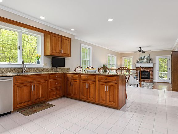 Step outside to the charming covered porch with an outdoor fireplace and views of the woods, patio, and spacious front lawn. The attached two-car garage and new Viessmann furnace add to the functionality of the property, providing you with comfortable living.