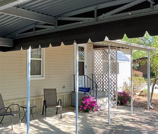 Solid 2 bedroom 1 bath manufactured home on a quiet, shady street near walking path in Columbia Park. a 55+ community. Mostly new insulation underneath and new PEX water lines. Needs renovation of kitchen and bathroom. Has newer vinyl windows, 2023 heat pump and air handler, and a large shed. Refrigerator, stove, washer, and dryer stay. Home was purchased to remodel for an aging mother, then woman wound up needing to live in a facility.